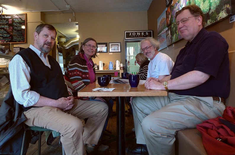 Can't remember what transpired at this week's Klatsch except that the KlatschMeister invoked an image of Krakatoa. The less about that the better. So, may as well move on to next week's Klatsch. It'll be another adventure, a kind of "going where (almost) no Klatscher has gone before" kind of thing. For a few weeks now the name Latin Pies and Coffee has been brought up as a possible new venue for us. Big Walt, who appears to have drifted off momentarily here, checked it out personally and offered his endorsement. Can you do any better than that? I don't think so. So, stay tuned for next week's thriling installment and a pic of the new java joint. |
