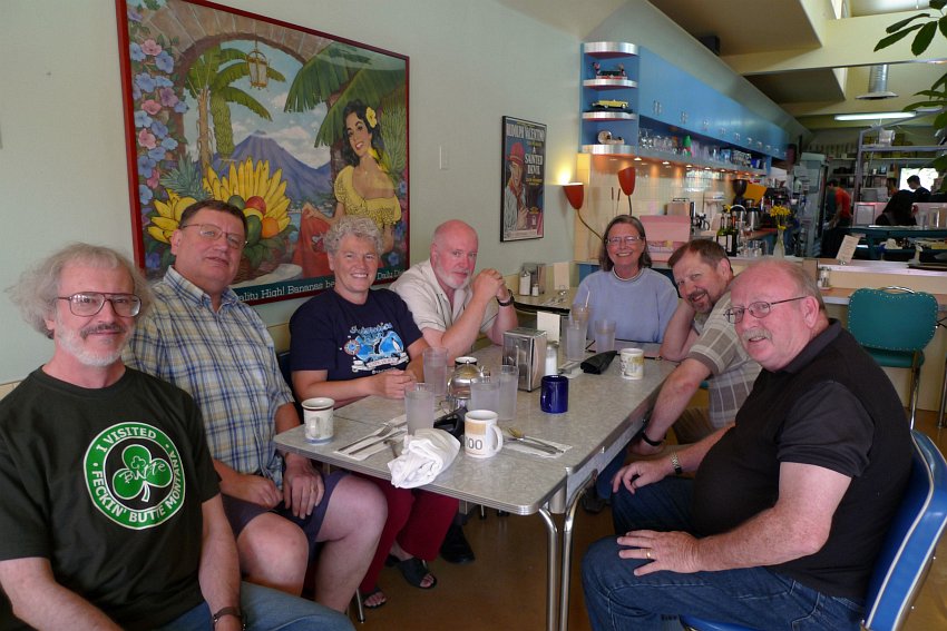 A good turnout at Diner DeLuxe this time. The sharp of eye will notice that Big Walt and Duggy Wuggy are in attendance, nice to see you gentlemens. Big Walt, fresh from an American adventure in the wilds of Montana, brought back a loverly souvenir for The KlatschMeister, which he is seen sporting in this shot. For the less sharp of eye, here's a closer look taken moments before in the Diner DeLuxe's palatial gents lavatory...