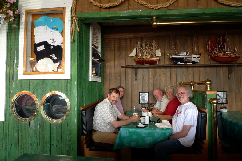 And here we are, clearing out of the Pelican Pier so the staff can prepare for the suppertime onslaught. That's not a Please Wait to be Seated sign with pink arms, it's Mary bidding a fond farewell to our plucky waitress.