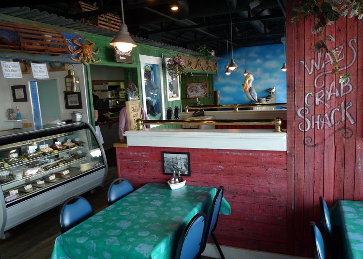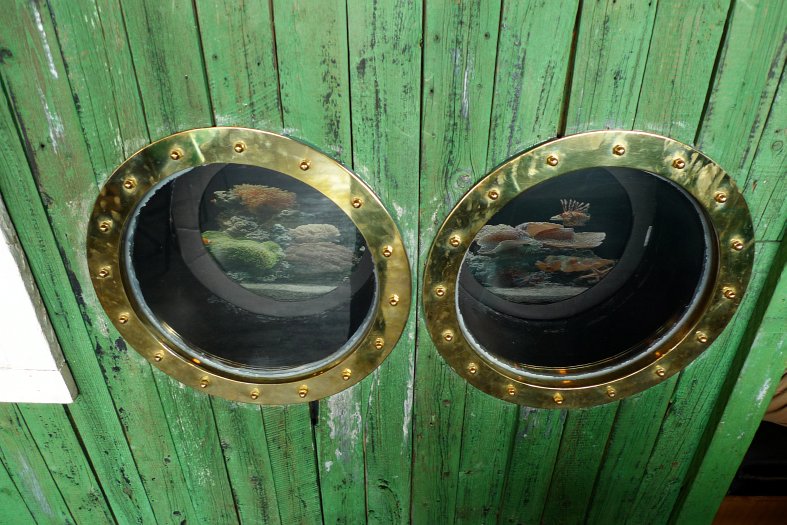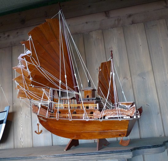 Here we are at Pelican Pier, a visual feast if ever there was one. For instance, the ship models above us on the wall.