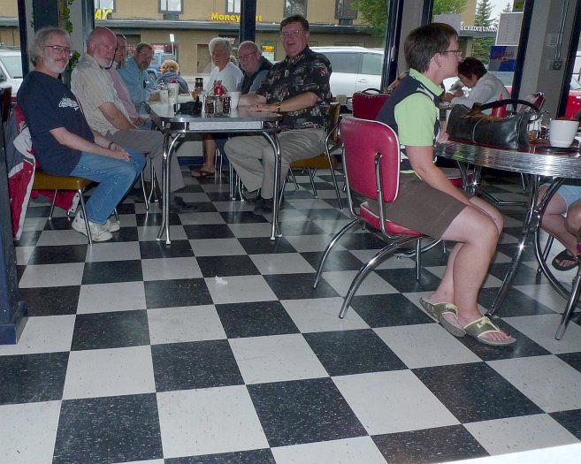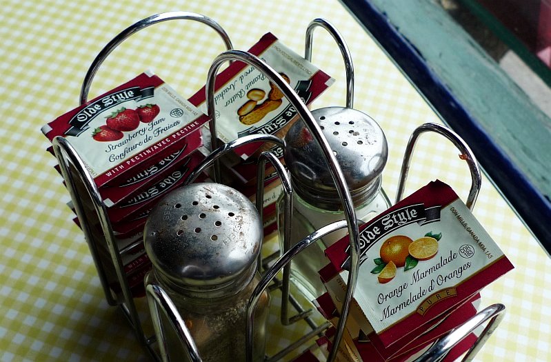 It's two thousand and nine, oh nine, oh nine today, so it would have been good to have had nine Klatsch attendees just for a bit of cosmic convergence. Alas, 'twas not to be. Seven is a pretty good turnout, though, so thnax everybody! As is usual with Cadence Coffee pics, there is an inordinate amount of floor showing in the shot. That's because the KlatschMeister likes the floor at Cadence but also because, in a bit of back 'n' forth before Klatsch day, Lawrence and El Klatscho ruminated on the subject of giant chess boards and Lawrence recalled seeing one when he was a kid on holiday in Elk Island Park. Another alas, no one brought any giant chess men so we were not able to have a game. After we put the tables back (when Duggy Wuggy encouraged the staff at Cadence to beat on us if we didn't) the KlatschMeister spotted some nice light coming through the window onto the jam caddy so he tried a close-up. It turned out O.K. so he felt compelled to share it with the world....