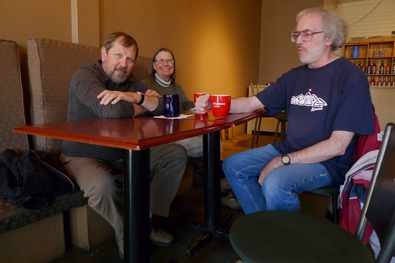 A small but distinguished gathering at Central Blends. Can't remember what transpired or why the KlatschMeister is looking like he is. But never mind.