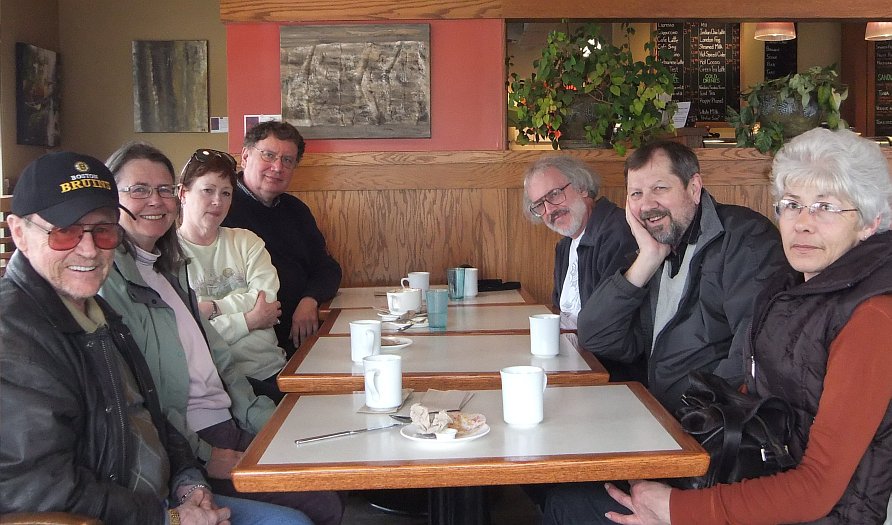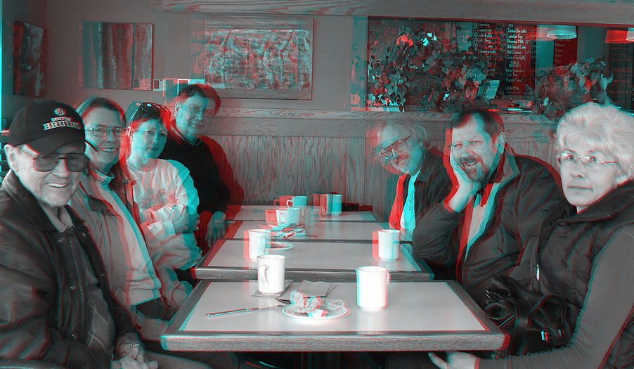 Man, it was windy today. And I hate wind! Nevertheless a bunch of hardy souls found their way to the Heartland Cafe and much hilarity ensued. Actually most of the talk centered around who sang what from the golden age of rock 'n' roll (with a bit of early country thrown in for good measure). There was one guy nobody could get. He was black, had curly hair and a mustache and was popular right at the very beginning of the rock era -- late forties probably. If you know who he is e-mail one of us. Where? Oh, I think you know where, you ckeeky monkey. Speaking of cheeky monkeys, here's a bunch of 'em in Stupefying 3D... |