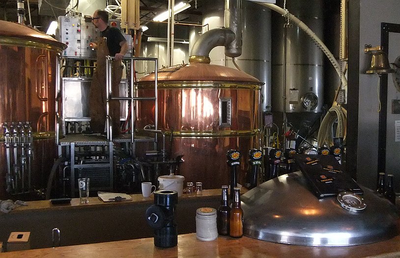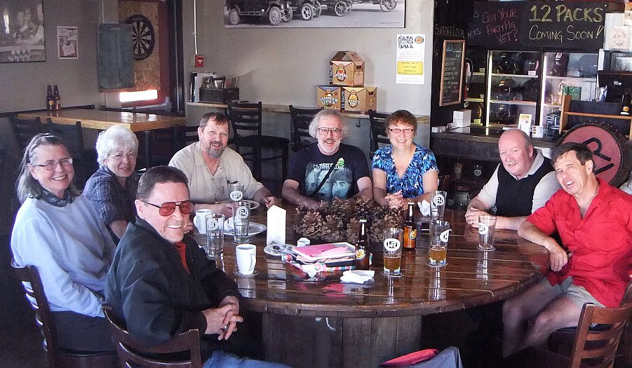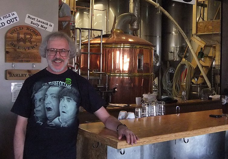 Six months or so ago Lawrence floated the idea of having a lunchtime Klatsch at the Wild Rose Brewery. Then about a month or so ago Mr. T gave a glowing report of its victuals and libations. Then a coupla weeks ago Doug Hare suggested we hit the place on Klatsch day. Weakened by this barrage of lobbying, the Klatschinator scheduled one for today and it turned out great. A very friendly place with good food and beer (El Klatscho had the Velvet Fog and it was very nice, indeed). Sheil and Gerry are back from the Excited States and took the opportunity to re-aquaint themselves with the pleasures of the Klatsch and we were glad to welcome them back to Canader.