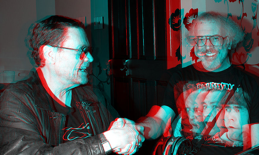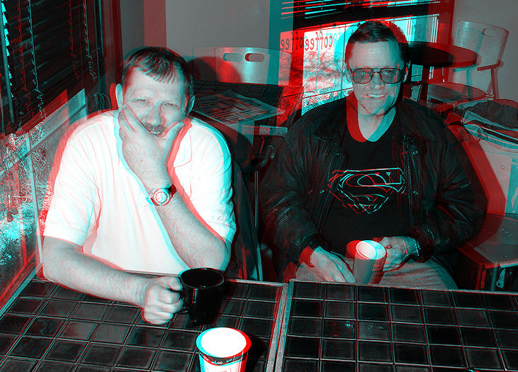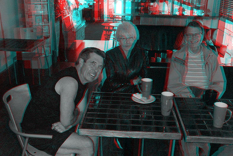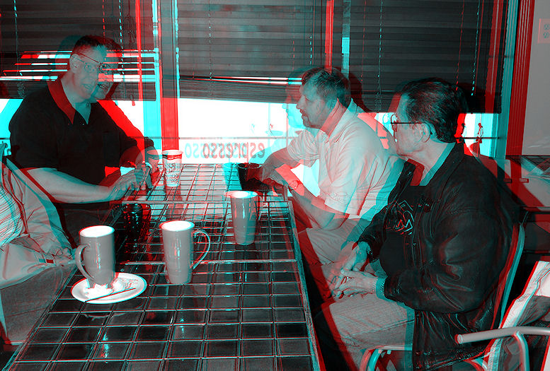 The group shot at the Joshua Tree just wasn't happenin' this time. Nothin' but trouble with the outboard flash. So, herewith, The KlatschMeister is pleased to present a selection of smaller, more intimate group shots. This one was taken by Ronald Burton and it's very nice. Here it is again in Stupefying 3D...