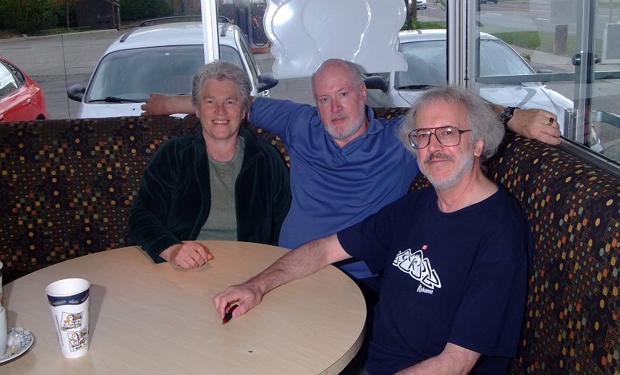 A small but distinguished gathering at Extreme Bean on this 26th day of May. Glancing out the window as he conversed with Mr. T, the KlatschMeister spotted a few snowflakes drifting by. I'll say that date again: May 26th! Sheesh. The Thornboroughs arrived early and found themselves with a half hour to kill so they headed down to Edworthy Park, an entrance to which is at the corner of Kensington and Shaganappi. While they were there they spotted a java joint called Angel's Cappuccino & Ice Cream Cafe. This soundz like an ideal Klatsch destination for a nice summer day so thnax to Mr. & Mrs. T for suggesting it. Stay tuned.