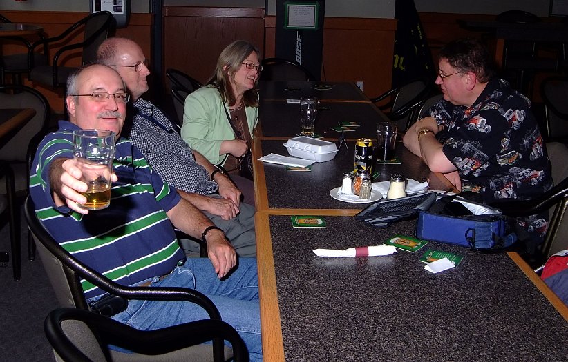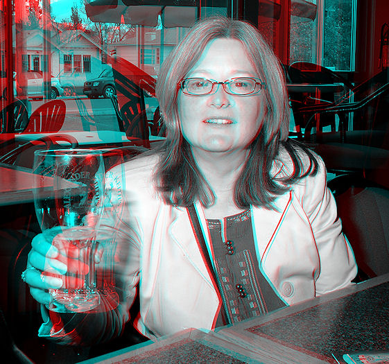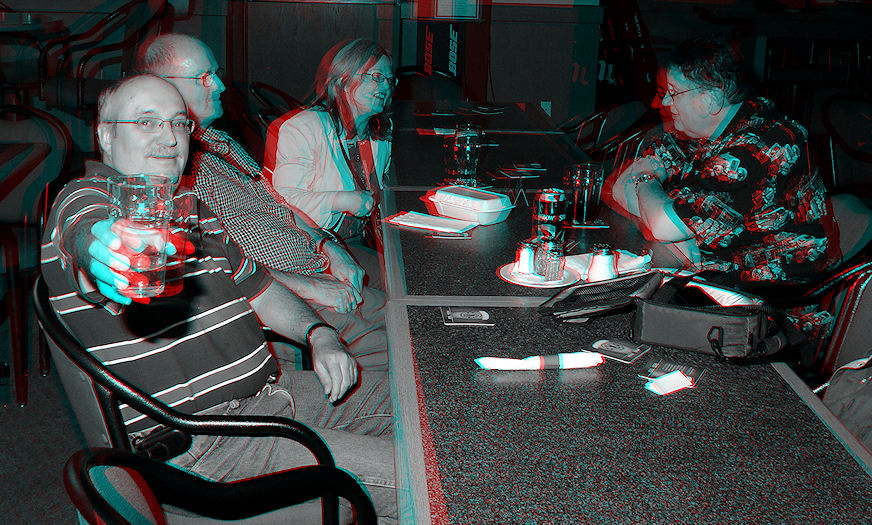 Many of the evening's attendees had vamoosed the Rembrandt Pub by the time the KlatschMeister got around to digging out the ol' cam for a snap. Anywaze here are the die-hards, nursing their drinks and holding their ground. Much hilarity ensued as we reminisced about the good ol' daze at The Tech and recalled our ol' pal Denis -- I can eat 50 eggs -- Belec. Come out for a visit so I can take a picture of you in 3D, Dex. Speaking of which, here we are in Stupefying 3D...