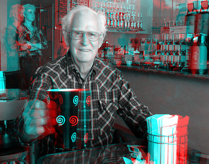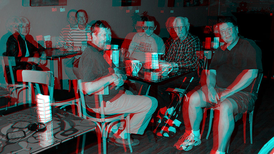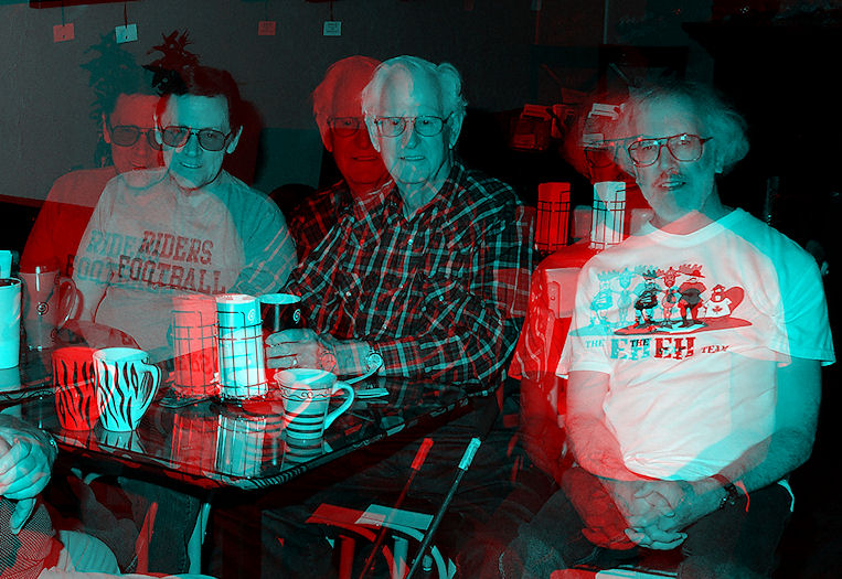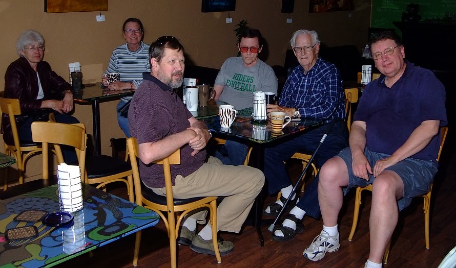 A very nice day in Calgary this Wednesday the day before Canada Day, 2010, and a new recruit to our merry band. That handsome devil, second from the right (between the other two devils) is Don McKenzie former photographer at The Tech and current guitarist in the internationally renowned musical group The Jeritol Jivers. Happy to report that Don is doing well despite not having had access The Tech's coffee for 30 years now. |
