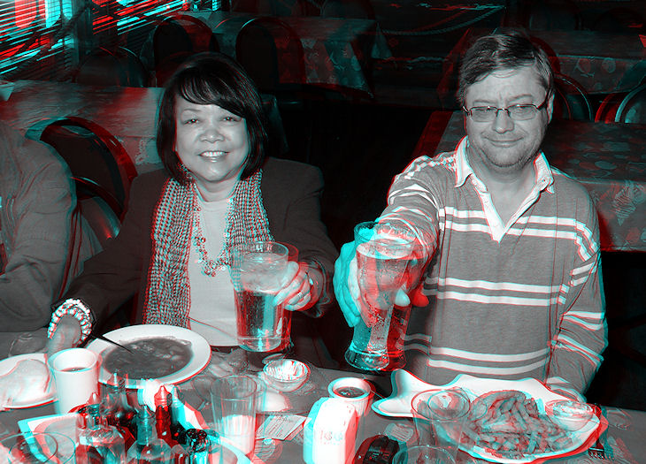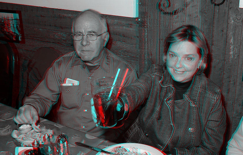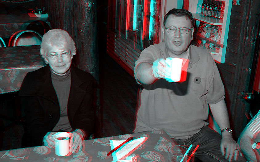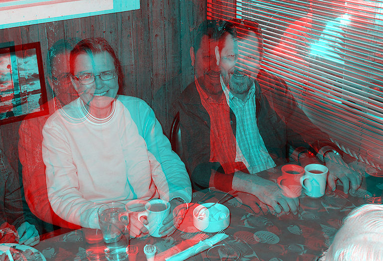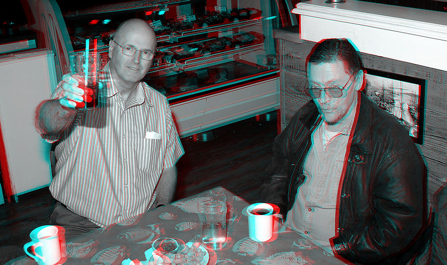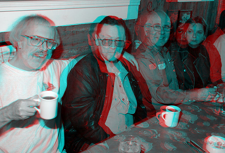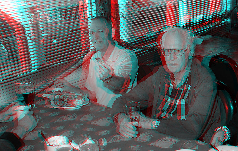 Big W took this nice pic of the KlatschMeister and Lorne at Pelican Pier. A little further down you will recognize Moe. But who's that a little further down. Why it's Lynn Rhude! That rascal Ronald got hold of Lynn and Cecilia Lanz and got them out to our little gathering. Check out the 3D snaps below for more.
