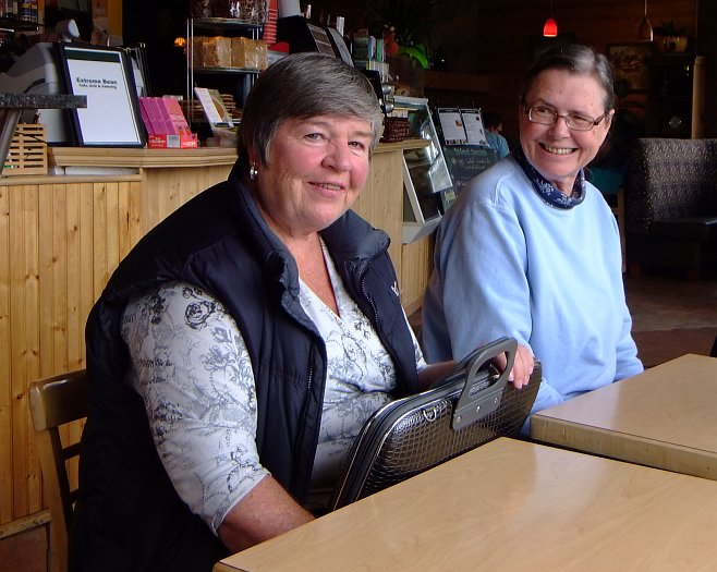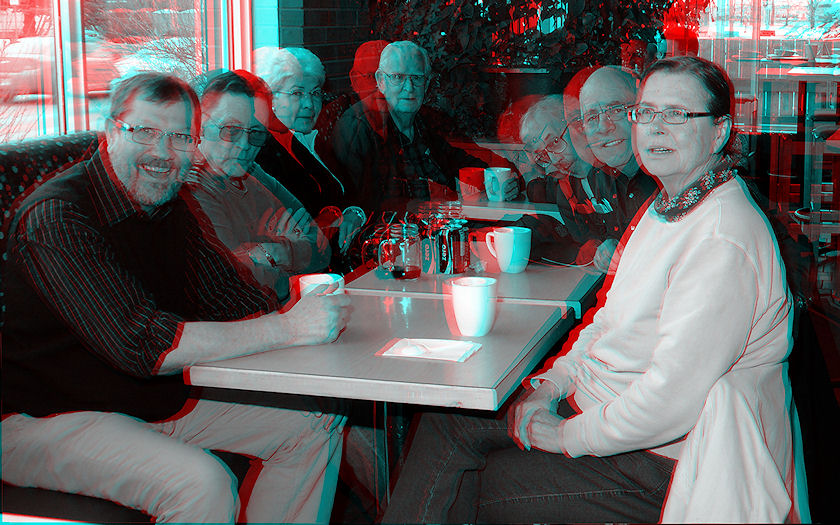 The KlatschMeister was fumbling around with his camera and flash equipment, getting ready to take the weekly pic when a voice from behind him called out: Can I help you with that, J.K.? Quick as a flash El Klatscho whirled around and who did he espy at the next table over? Why it was Sylvia Teare who did some time at the Tech back in the day. She was there with some colleagues and came over to set a spell with us. Great to see you, Sylvia! Don't be a stranger.