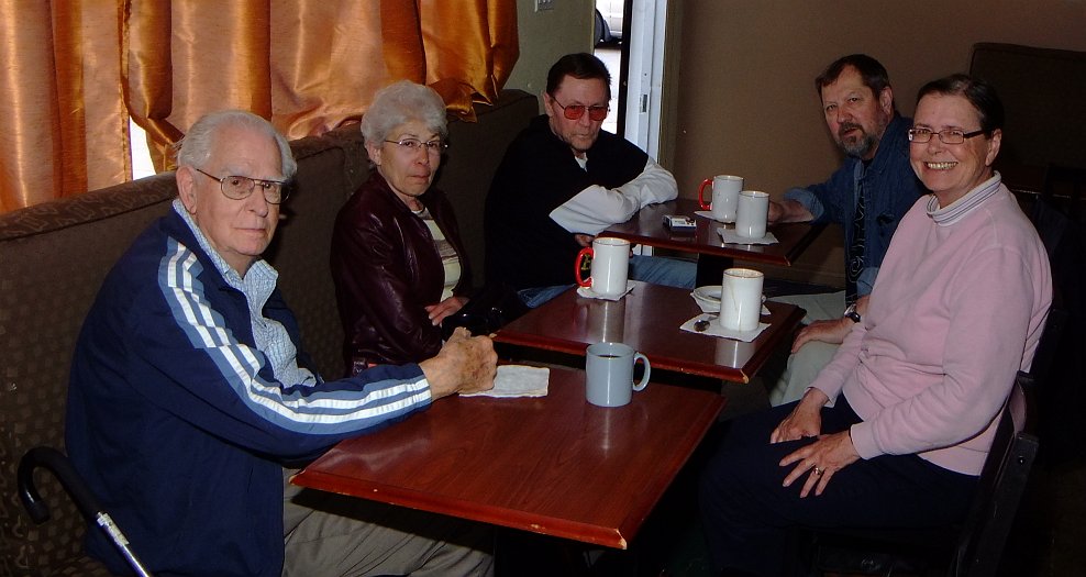 The KlatschMeister was late to this gathering of the Klatsch due to a dental appointment. That's not him in the empty chair next to Mary.