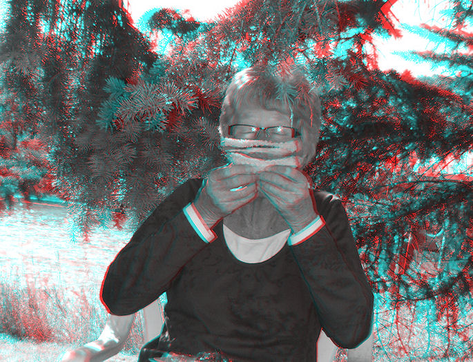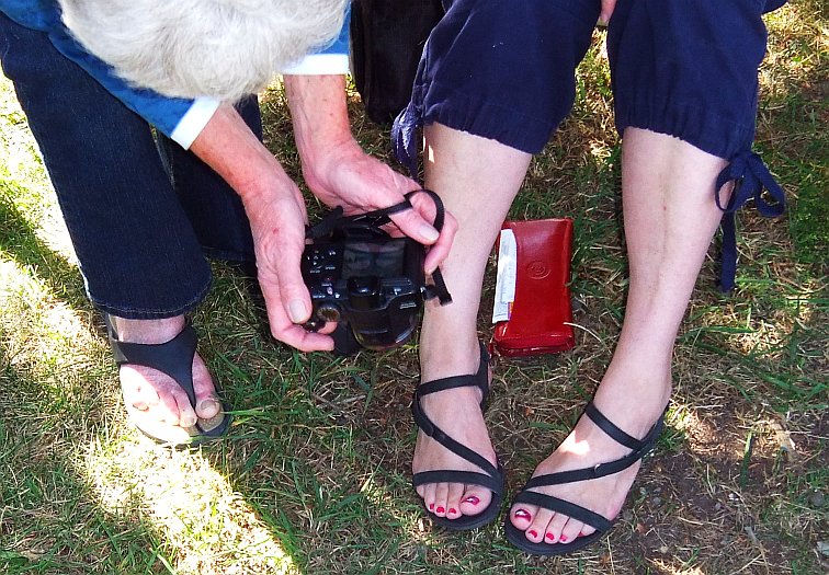 And here's our visitor, Julia Legg from New Zealand, showing us how they eat a sandwich in that other land downunder. From the outside in, seems like.