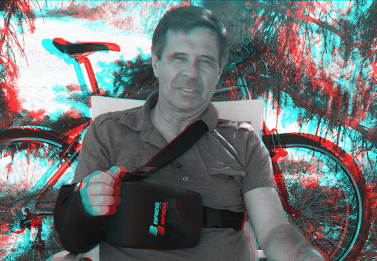 You might have noticed Gerry's arm thingy in the previous shot. Seems he got all jazzed up on smart juice at the Science Cafe and got into a brawl with some particle physics dude. It got ugly, sub-space field harmonics were invoked (not saying who did it) and poor Gerry ended up with his arm in a thingy.