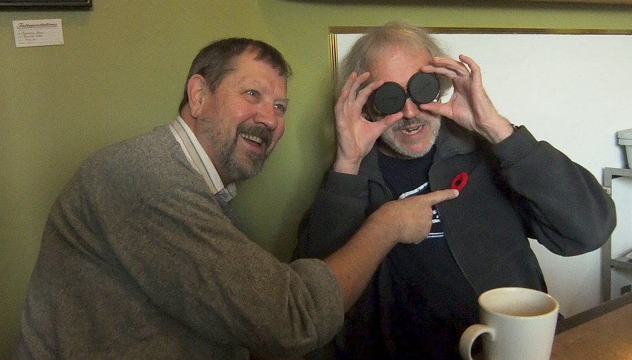 It's the day before Remembrance Day and the Klatschinator is sporting his poppy. The question is, did he buy this poppy this year or did he cheap out and recyle the one from last year? Lawrence seems to be saying "Hey, I recognize that poppy!" El Klatscho might be saying "Poppy? I don't see any poppy?"