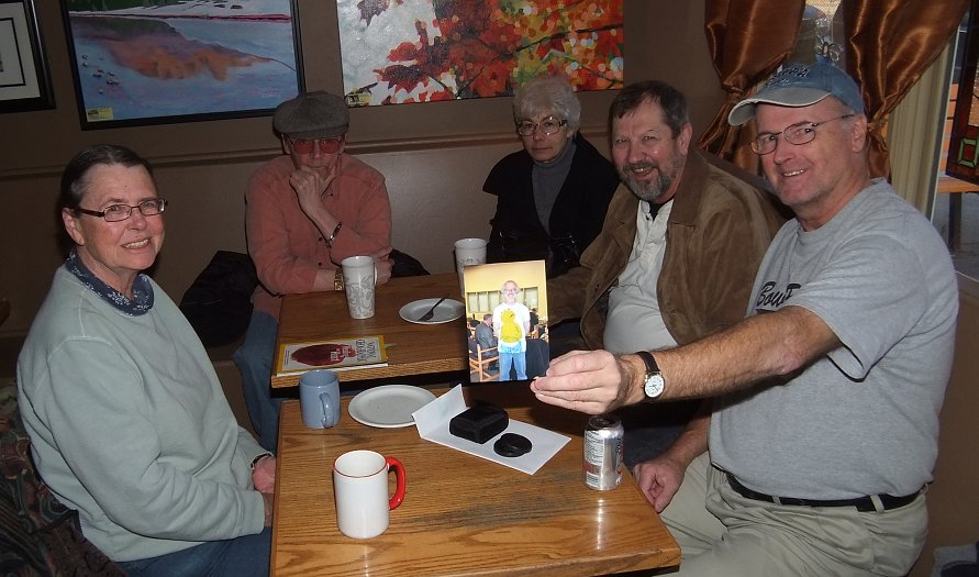 Here's a shot of today's Klatsch at Central Blends with everyone in it. Pretty damn clever, eh? Lorne brought a copy of a photo he took of the KlatschMeister at Don MacKenzie's anniversary party and presented same to El Klatscho. Thnax, Ronald! The exposure seems bang on to me!