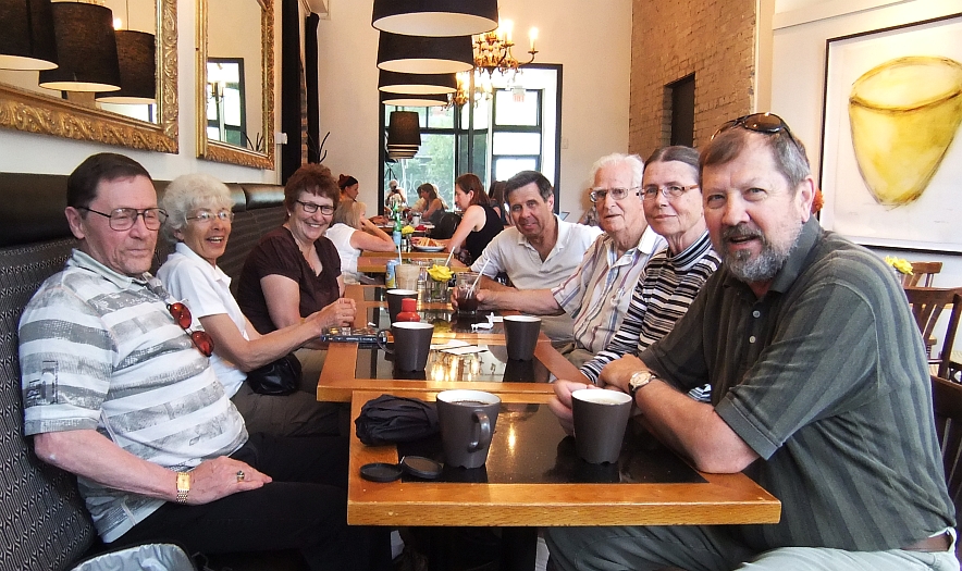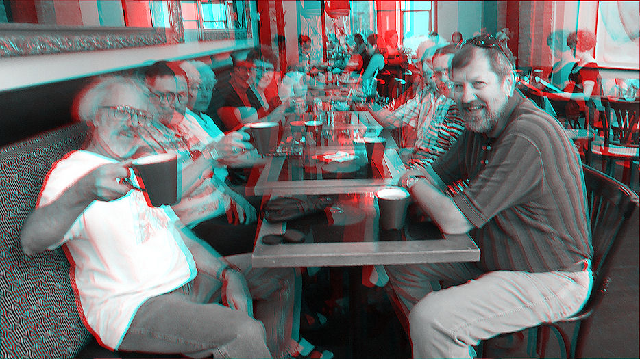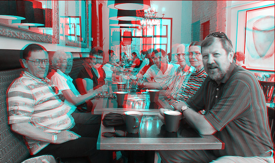 Here we are having a jolly time at the Vendome Cafe in historic Kensington (or someplace historic like that). The KlatschMeister was busy when this photo was taken so he doesn't appear in it -- or does he?
