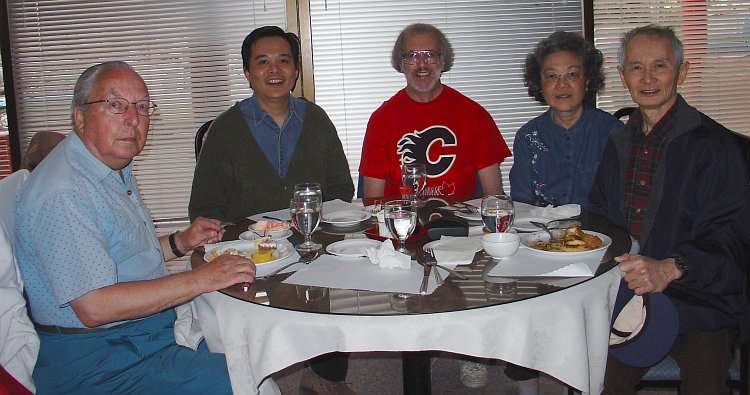 Lunch at the Yangtze Buffet with Mel, Alvin, Olivia and Dan. Mel was just back from the NAB Convention in Las Vegas and was still in "buffet mode". The Calgary Flames are in the playoffs for the first time in 15 years (or something like that) so The Mayor (avid hockey fan that he is) decided to wear the Flames T he got from Krysak. |