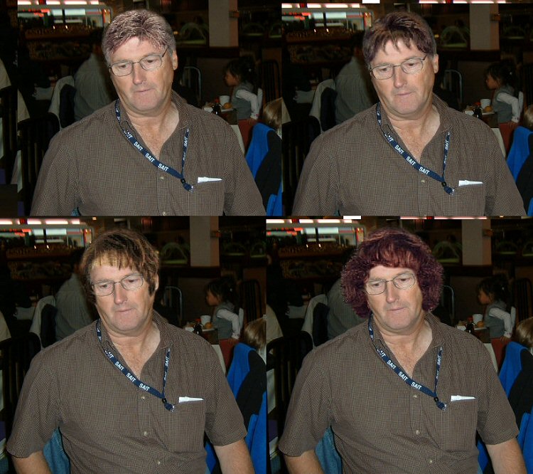 After Dan got home, he fired up his photo editor and decided to give Digby some new hair. I think I like D's all natural look the best.
