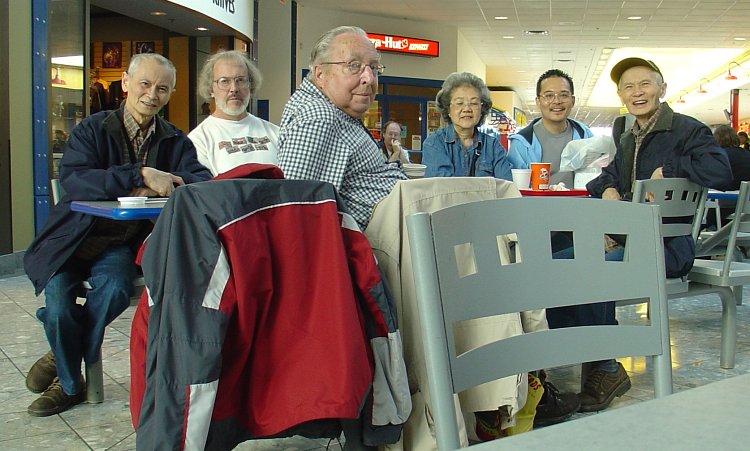 Here we are after another lunch at the Yangtze Buffet. We decided to create a clone of Dan using subspace field harmonics. The clone is the one without the hat. Subspace field harmonics won't do hats for some reason.