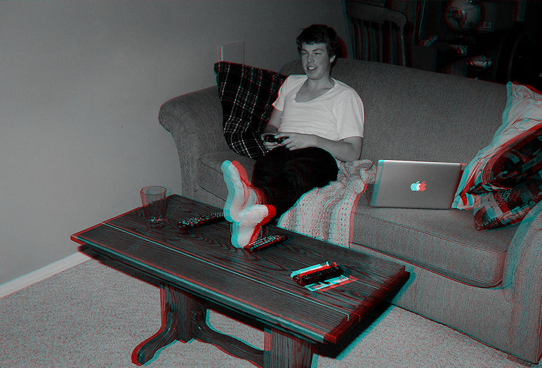 Downstairs, number one son works up an appetite with a game of virtual hockey.
