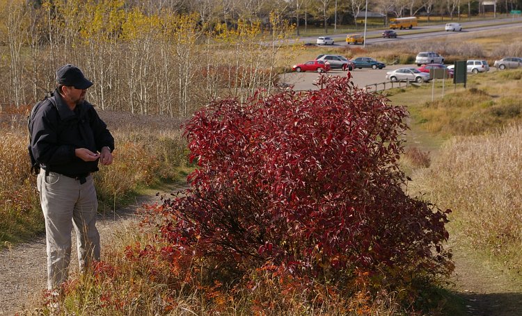 Mary said she liked the cut of this bush's jib and Lawrence decided to get some of the berries from it to look up when he got home.