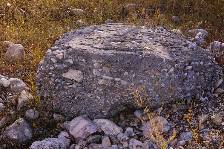 This looks like concrete but is, in fact a natural formation called a conglomerate. Beats me how Mother Nature got all those little stones to stay in there that way.