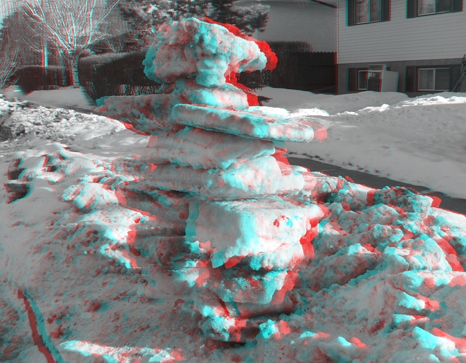 Around the corner from the Mayor's Mansion some folks decided to put the chunks of ice they'd chiseled out of the their driveway to good use. They made this nice inukshuk to stand guard in front of their house.