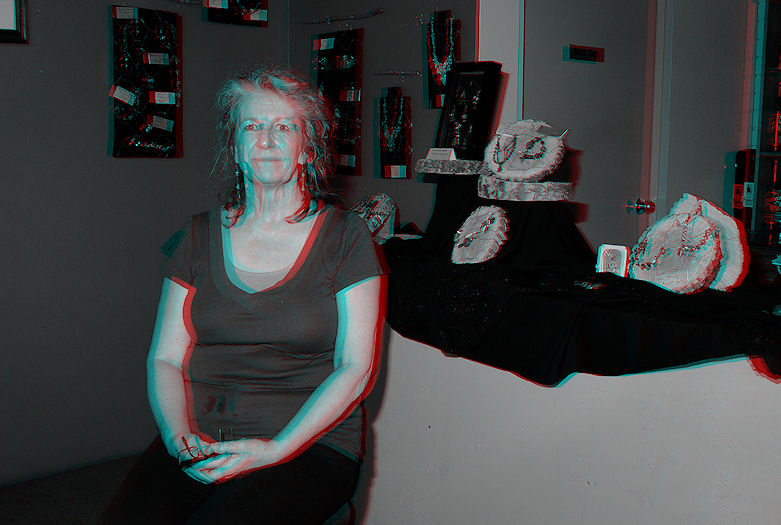 We ran into this lady at Central Blends while we were shooting our weekly Klatsch pic. She said there are three people in her family and they have seven computers so there's probably at least one available for looking at 3D pics on the Internet!