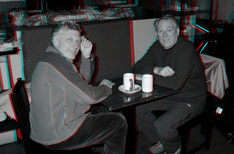 Our Klatsch rotation brought us to Central Blends today and who should we run into but Garry Kerr, the handsome devil on the right. He was there enjoyin' a java with another handsome devil, his pal on the left. Good to see you Garry. More proof that there is life after The Tech. |