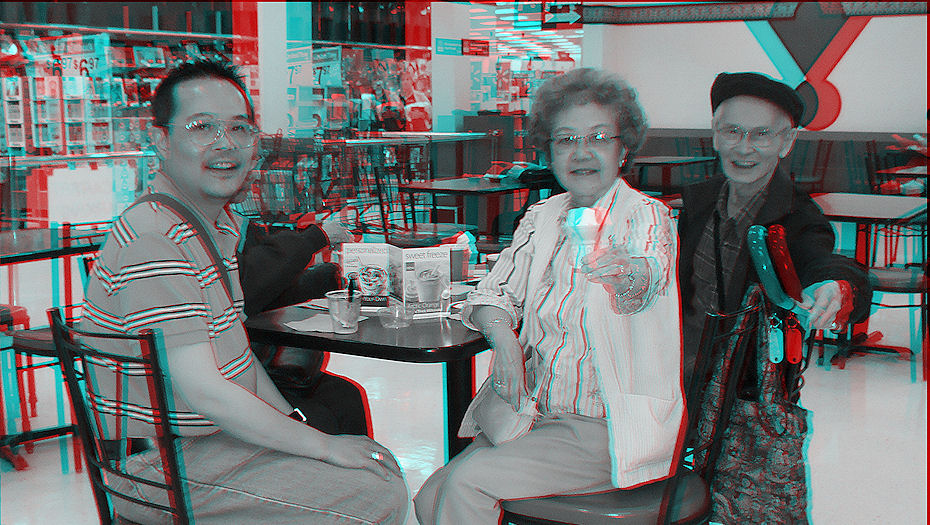 Yes, I'm known for my uncanny photographic instincts. You can just barely see Judy there behind Alvin. Sorry Judy, but that rascally Computer Man distracted me with his 3D cane poking shenanigans. I can never resist a good cane poke! Anywaze, despite leaving the guest of honor out of the shot, it was nice to see Judy again here in Cowtown and we all hope she has a safe trip home. |