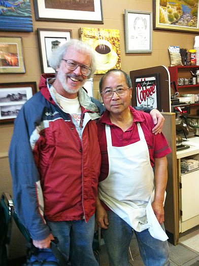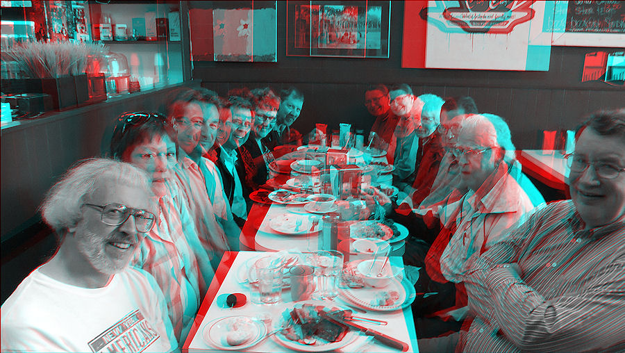 Dan Forre (third from the front on the left) suggested we have a lunch-time Klatsch at the Dell Cafe and here we are -- quite a mob! After observing The KlatschMeister struggling to get a decent shot, Johnny came out from the kitchen and offered his services as a photographer. And it's a good thing he did, too! This is his shot and it turned out great. Thnax, Johnny!