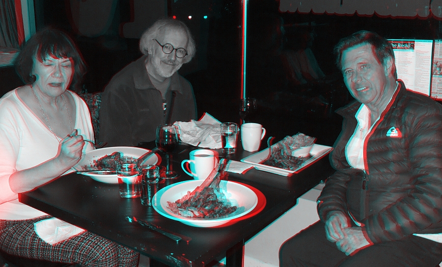 Sheil was stuck in Phoenix (that's the breaks) so Lorraine and Gerry and I went to a flick and then for dinner at a place Lorraine knows called The Rock. Gerry said he had just made a killing on the market so dinner was on him as long we picked something from the "expensive" side of the menu. Loraine and I had the lamb shank and it was fantastic! The fellow who runs the place said they cook it for twelve hours! Thnax for a genuinely memorable dinner, Gerry! (O.K. that's enuff exclamation marks.) |