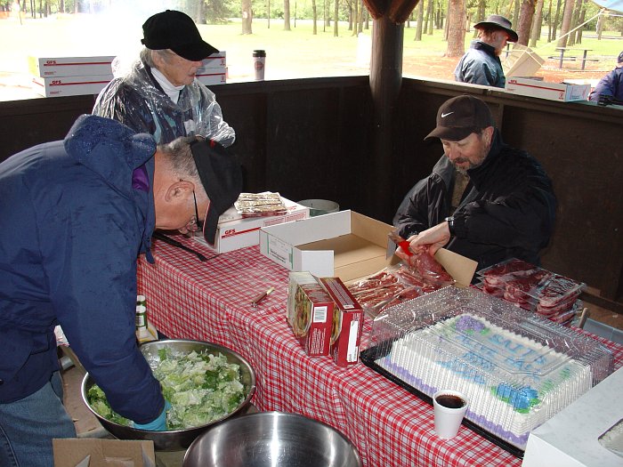A couple of Klatschers stepping up to plate (before they cued up with their plates). Lawrence, mere moments off a plane from Old Blighty, gets a little blood on his hands while Moe enjoys a spot of salad diving.