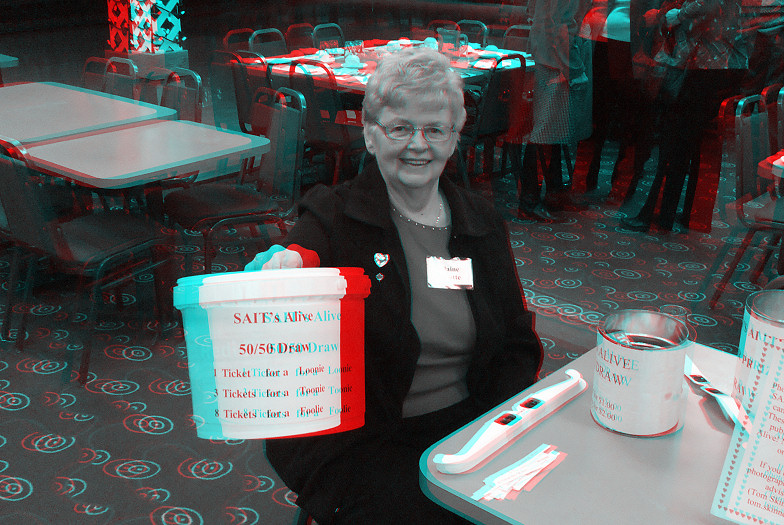 Strategically positioned at the sign-in table Elaine Sinotte encourages luncheon attendees to purchase tickets for the 50/50 draw.