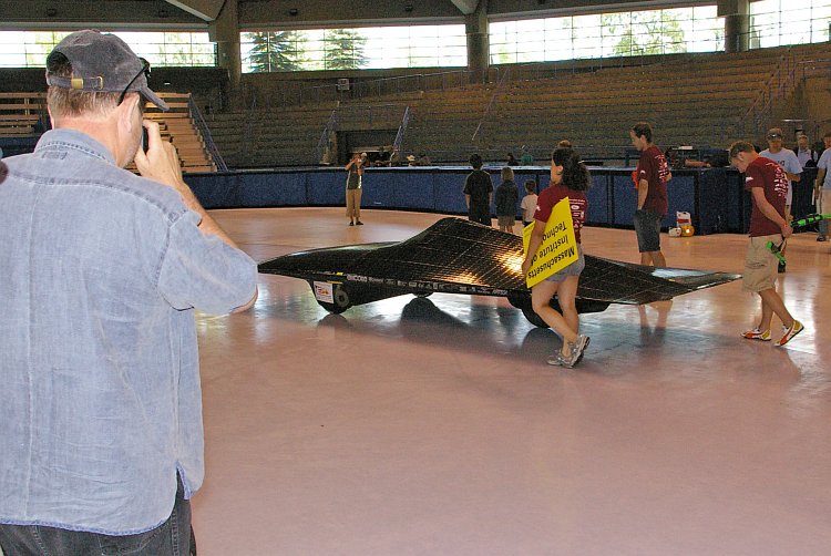 Lawrence gets a shot of the MIT car as it comes into the Olympic Oval.