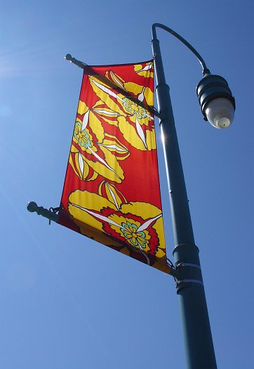 After leaving Higher Ground, we noticed that the traditional Stampede banners have given way to these floral designs. This one was on the 10th Street bridge. It's quite nice, but not very Stampedie.