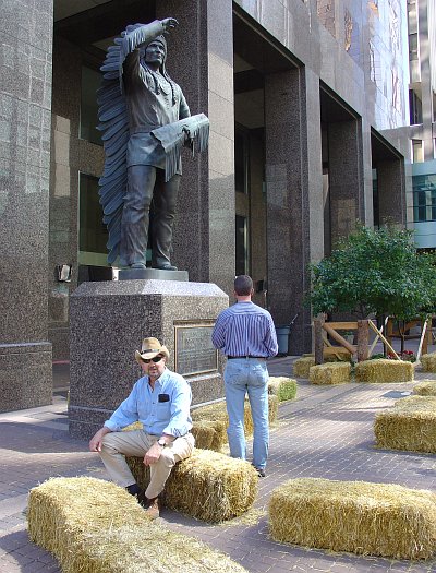 Bales of hay (or, you know, straw or something) on a downtown street. Whatever can it mean?