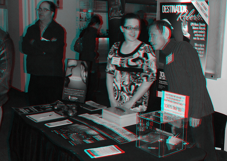 Many of the employees, vendors and audience members at the Jack Singer Concert Hall wore their Spock ears and Star Trek regalia on the evening of the performance. These folks were manning a booth selling raffle tickets for an autographed poster.
