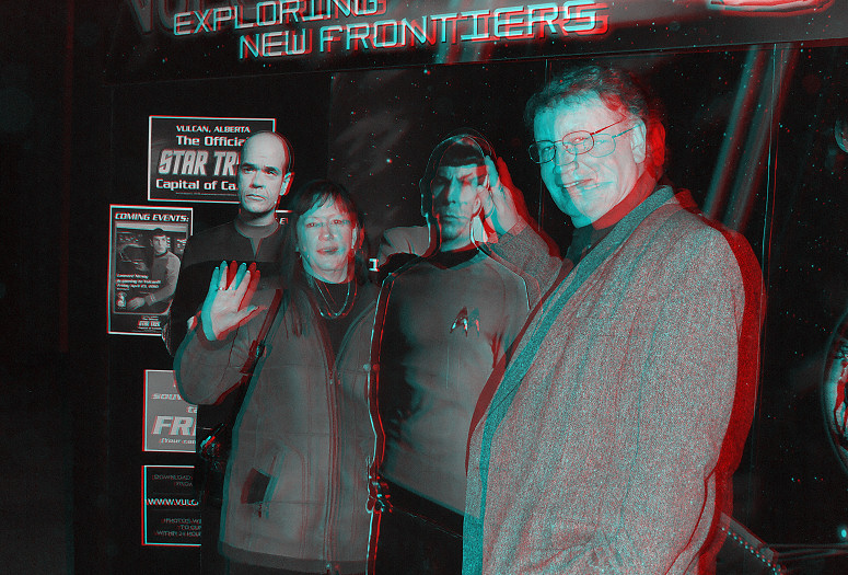 They have now moved on to the Vulcan photo booth where the larger of the two appears to be trying to get some free Spock ears -- directly off of Spock!