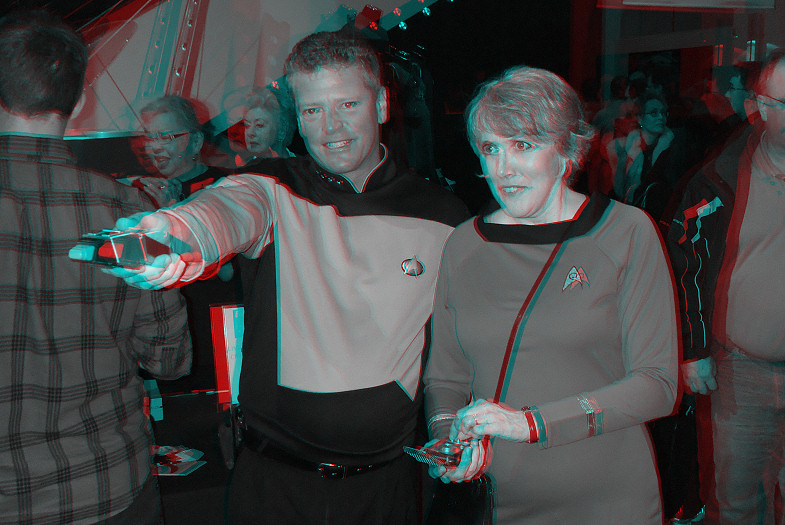 Two spiffily attired visitors from the 23rd century fully equipped with a phaser and communicator.