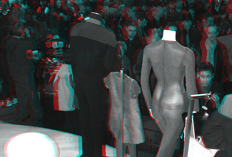 The displays included mannequins dressed in costumes from the various Star Trek series and feature films. This was shot from the elevator going up to the second level.