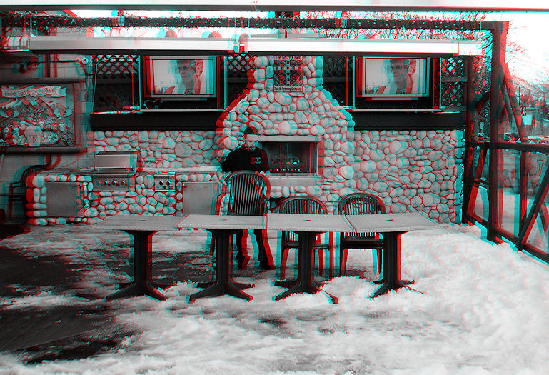 The Sunday we were in Canmore they were staging the Heritage Classic outdoor hockey game in Calgary. This restaurant couldn't handle the crowds that showed up to watch the game and was busily setting up overflow seating on its patio out front. They're a hardy bunch those Canmore folks. |