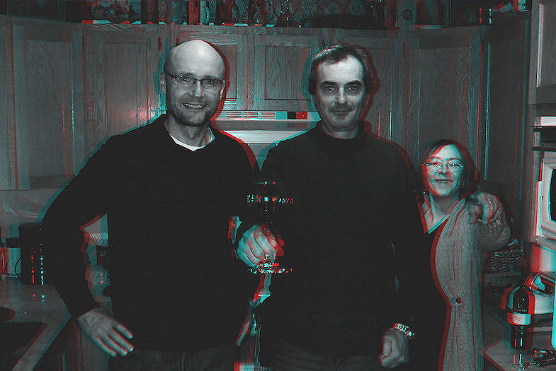 Marko and his pal posed for this shot just as Hizzoner's outboard flash decided to get persnickety. This shot was grossly under exposed and suffers from the Fuji camera's bizarre internal flash lighting effect (strange behind-the-head shadows). This is the best I could do with my limited digital editing skills. Sorry guys. |