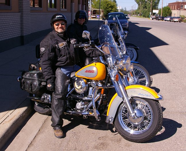 And just before we headed outta town, this couple pulled up beside the Black Diamond Hotel on their hawgs. They were both very friendly and kindly consented to have their photo taken.