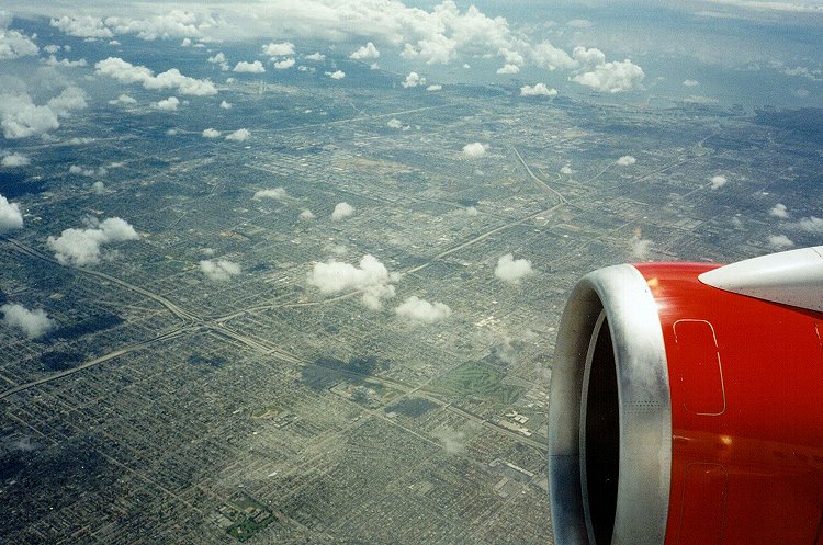 L.A. with clouds. Kinda neat the way you can see the shadows directly below them.