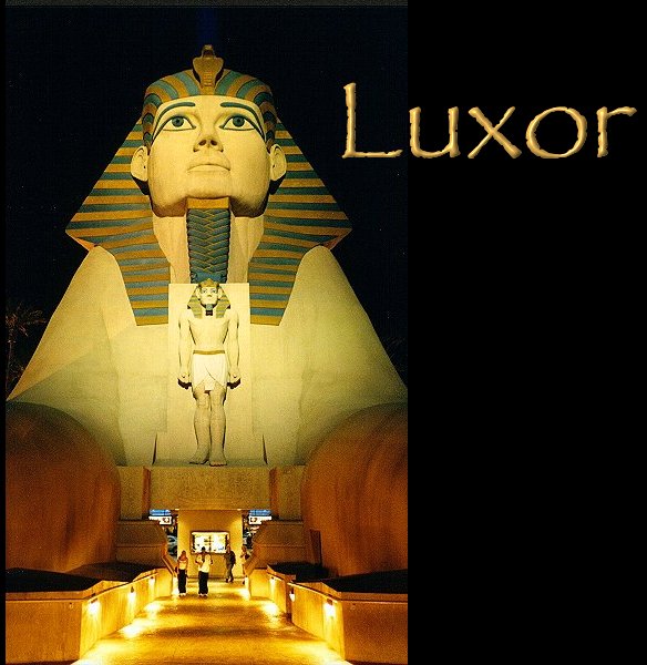 The main entrance to the Luxor casino and hotel complex. This replica of the Sphinx faces Las Vegas Boulevard and sits in front of the Luxor pyramid which houses the casino and hotel.