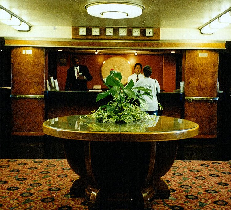 The Queen Mary's passenger cabins and staterooms have been converted into hotel rooms. The original purser's office now serves as the hotel's front desk.