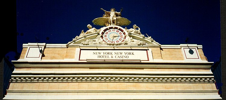 Above one of the entrances to the New York, New York casino. At this point you are actually on a plus-15 walkway coming from Excalibur. There are, of course, escalators from street-level to the plus-15. They don't want to tire you out before you get to the ol' gamblin' floor. |