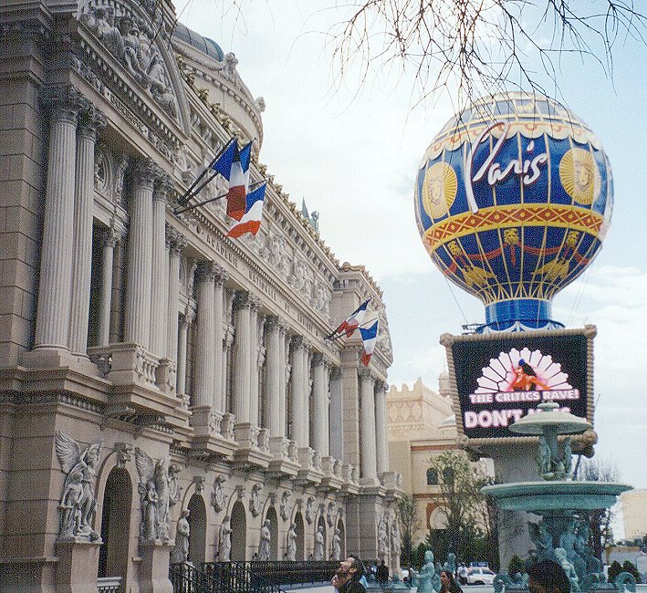 In front of the Paris, Las Vegas Hotel/Casino complex. The building on the left, which fronts onto Las Vegas Boulevard, is the Paris casino.