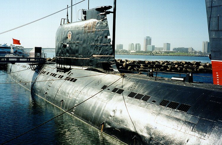 Although the hull looks a bit beat up, it is actually relatively new. In 1989, Scorpion was returning to Vladivostok from Vietnam when it ran into a typhoon. A mechanical breakdown which could not be repaired in time prevented the sub from diving. The storm battered the boat mercilessly, destroying the light hull and damaging the ballast tanks and high pressure air bottles. It limped back to Vladivostok where it was repaired and refitted with a new light hull. |